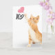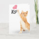 Goldkatze mit rosa Herzballon zum 109. Geburtstag auf weißem Hintergrund. Die Hintergrundfarbe kann geändert werden.