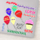 Feiern Sie Ihren 10. Geburtstag oder personalisieren Sie für jedes Alter etwas Party-Spaß mit diesen farbenfrohen festlichen Laser-Vinyl-Aufklebern. Festlicher rosa mattierter Schokoladenkuchen mit Sprinklen und blauen Flickerkerzen. Fliegende Ballons voller guten Geburtstags jubeln in rot-orange-blau-gelb grün. Geburtstagskamerad, Happy Birthday, 10. ist in farbenfrohen Texten in Ballons geschrieben, Doppel-Ziffern für Spaß. Personalisieren Sie den Namen, der im grünen Text angezeigt wird. Der Geburtstag des Glücks ist in lila, roten Bonbonformen geschrieben. Für besonders große Vinyl-Aufkleber konzipiert, die sich herausstechen und einzeln ausschneiden. Original Artwork Design © TamiraZDesign. Besuchen Sie meinen Laden, um mehr Originalartikel zu sehen: www.zazzle.com/tamirazdesigns