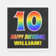Dieses lustige, farbenfrohe und fröhliche Geburtstags-Thema Papier Serviette Design zeigt eine große Zahl "10" und die Nachricht "HAPPY BIRTHDAY", beide mit einem Regenbogenspektrum inspirierten Muster, zusammen mit einem kühnen gelben, anpassbaren Empfängernamen. Der Hintergrund ist schwarz. Spaß, maßgeschneiderte Papierservietten wie diese können bei einem Party genutzt werden, das zum 10. Geburtstag von jemandem gefeiert wird. [~Z0000476]