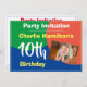 Einladung zu einer besonderen Geburtstagsparty mit Namen und Anzahl von Jahren. Party Einladung für einen zehnjährigen. Fügen Sie Ihr eigenes Foto hinzu und verkleinern Sie die Größe des Anzugs. 10. Geburtstagsfeier Einladungen. Foto Credit: Fotografie © Storytree Studios, Stanford. CA.