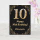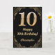 10. Geburtstag Schwarz und Gold Glitzer Rahmen Karte
