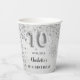 Für eine glamouröse und mädchenhafte Feier zum 10. Geburtstag. Ein Imitat silber aussehender Hintergrund. Auf der Vorderseite und auf der Rückseite: Personalisieren und fügen Sie einen Namen, und ein Datum. Dekoriert mit Imitaten silberne Glitzern. Nummer 10 wird mit einem Schriftart im Ballonstil geschrieben.