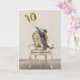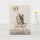 Graue Tischkatze mit Goldfolie-Ballons auf einem altmodischen Stuhl zum 10. Geburtstag. Der Insider-Text kann bearbeitet werden.