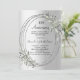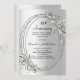 Ein Imitat silber aussehender Hintergrund. Die Einrichtung ist mit Grün und einem ovalen Rahmen gestaltet. Personalisieren und fügen Sie einen Namen und Details.