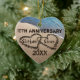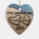 Fügen Sie einfach Ihre eigenen individuelle Namen oder einen beliebigen Text hinzu (im Beispiel steht: "10. Jubiläum" und ändern Sie einfach, was das Jubiläumsjahr ist (z.B. 1., 2., 3., 4., 5., 15., 20., 25. usw.) mit Namen des glücklichen Liebespaar in die Herzen, um diese wunderschöne beliebte Herzform mit einem originellen Ornament zu personalisieren, berufliches Foto von zwei Herzen geschrieben in den Sand entlang des blauen Ozeans Wasser, um Liebe und Romantik. Großartiges Konzept für Liebe, Reisen, gerade verheiratet und die kommenden Sommer Save the Date Strandhochzeiten, Jubiläum und Valentinstag. Ein lustiges, niedliches, persönliches und einzigartiges Sake-Ornament, um ihr oder ihm zu geben, diese besondere Person, Freundin oder Freund, zukünftige Braut und Bräutigam oder irgendein Liebespaar. Dieses personalisierte Design ist auf einer Seite und auch mit dem Design auf zwei Seiten erhältlich.