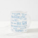 A classic 10 oz frosted mug with neptune blue beach life words.
