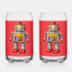 Add a touch of nostalgia to your drinkware with this charming retro robot glass concept featuring a classic 1950s style tin toy robot design against a bold red background. These glasses are perfect for science-fiction fans and vintage toy collectors alike