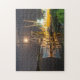 Schönes 10" x 14" Puzzlespiel, das Jamie Andersons "Shrimpers Vollmond-Freuden" Kunstphotographie kennzeichnet. Diese Fotografie nimmt das Fliegen-Wolkengarneleboot im Hafen unter einem herrlichen Vollmond nachts im Thunderbolt, Georgia gefangen