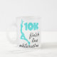 10K Aqua Finish Line Exhilaration Design mit Aqua und Schwarz Text und eine Silhouette weibliche Läufer über die Ziellinie. 10K Läufer Bekleidung und Geschenke für jeden, der eine 10K laufen.