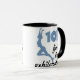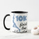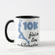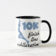 10K Blue Finish Line Exhilaration entwirft T - Shirt, Hoodies, Tasse, Tasten, Schlüsselketten und vieles mehr mit blauem und schwarzem Text und einer Silhouette weiblichen Läuferin, die die Ziellinie überquert. 10K Läufer Bekleidung und Geschenke für jeden, der eine 10K laufen.