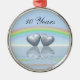 Zwei Zinn- oder Aluminiumherzen schwimmen unter einem Regenbogen auf dem Wasser. Der Text "10 Jahre" steht für anpassbar.