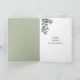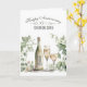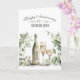 Watercolor wine bottle and two wine glasses, set against a soft green floral frame of ivy and eucalyptus, for the couple's 10th wedding anniversary.