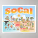 Die helle und farbenprächtige Szene bietet einen spektakulären Blick auf Südkalifornien - wackelige Figuren, die am Strand und in der Wüste von SoCal zu sehen sind, die Los Angeles, San Diego, Orange Landkreis, Santa Barbara, Riverside, Palm Springs, Anza Borrego und Joshua Tree Parks sowie die Grenzstädte Tijuana, Tecate und Mexiko zeigen. Diese zauberhafte Szene hat alles - ein Surfer hängt zehn, ein Killerwal springt aus dem Wasser, Zootiere begrüßen die Touristen, ein muskulöses Strandpaar beide flex zu beeindrucken, wie ein T-Rex eine Herausforderung brüllt und ein Tank sich in Position und vieles mehr..