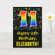 Die Vorderseite dieses lustigen, farbenfrohen und lebendigen Geburtstagskarten-Designs zeigt eine große Zahl "11" mit einem inspirierten Regenbogenspektrum. Es enthält auch die Meldung "Happy 11 th Birthday", und einen benutzerdefinierten Empfänger-Namen. Die Vorderseite hat auch ein Muster verschiedener Musiknoten und Symbole mit verschiedenen Farben und Größen. Im Inneren befindet sich eine individuell angepasste Geburtstagsgrüßbotschaft, oder man könnte sie löschen und leer verlassen werden, wenn eine Nachricht von Hand geschrieben werden soll. Eine individuell anpassbare Geburtstagskarte wie diese könnte eine lustige Art sein, jemandes elften Geburtstag zu bestätigen. [~Z0000420]