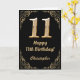 11. Geburtstag Schwarz-Gold-Glitzer-Rahmen Karte