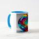 This 11 oz ceramic mug has color on the inside and on the handle. A colorful glass marble design covers the front of the mug. This unique mug will add color and interest to your mug collection!