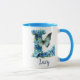 Eine personalisierte Kaffee-Tasse in Blautönen mit koordinierendem Schmetterling, mit dem Buchstaben "L" Monogramm. Einfach mit Ihrem Namen anpassen oder ein einzigartiges Geschenk für Ihre Lieben schaffen. Es ist genug Platz, um ein zusätzliches Zitat oder eine Nachricht oder sogar einen Hintergrund hinzuzufügen. Diese Tasse ist auch in verschiedenen Stilen und Farbkombinationen erhältlich. Durchsuchen Sie die Auflistung, um Beispiele für diesen Schriftart-Typ in den verschiedenen Cup-Stilen und -Größen zu sehen.