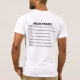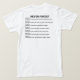 Am 11. September Erinnerung. Der vordere Entwurf memorializes das Pentagon, die Twin Tower und Pennsylvania - im Bild und im Wort. Das Datum, 09-11-01 wird als vermischte Zahlen mit Bildern angezeigt. Das Pentagon (als das null für 09), die Doppeltürme (gezeigt hinter den 11) und ein Bild eines Fundaments - als Pennsylvania ist der TrapezfehlerStaat - (als das null für 01). Die Rückseite der T - Shirts memorialize einen Timeline der Ereignisse des Tages. ** Empfehlen Sie Sie nur Auftrag auf einem WEISSEN Shirt.