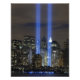 Fotografischer Druck, Erinnerung an die von der Tragödie vom 11. September in den Zwillingstürmen des Welthandelszentrums in New York betroffenen Menschen. Dieses Foto (das von US DOD zur Verfügung gestellt wird) zeigt die Leuchttürme in leuchtend neonblau, die über die dunkelblauen Wolkenkratzer und Lichter der Stadt ragen, in denen die Gebäude früher lebten. Unterstützen Sie die Gelegenheit und zeigen Sie Ihre Sorge und Sorge als Patriotic USA Bürger.