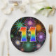 Dieses lustige, fröhliche und farbenfrohe Papier-Platte-Design hat eine große Zahl "11" mit einem Regenbogenspektrum inspirierte Muster-Färbung. Es zeichnet sich auch durch ein lebendiges und aufregendes Feuerwerk inspiriert. Der Hintergrund ist schwarz. Teller wie dieses können sich bei einer Feier als Vergnügen erweisen, wenn jemand geehrt wird, der seinen 11. Geburtstag, 11. Geburtstag oder ein anderes 11. Ereignis feiert. [~Z0000490]