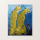 Zwei Geparden, die im großen Gras als Dämmerung und umgeben von Glühwürmchen sitzen. Das ist ein großes Rätsel für Menschen, die mit rot-grüner Farbenblindheit leben.