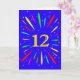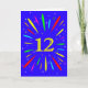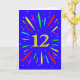 Eine explosive 12. Geburtstagskarte! Was für eine wunderbare Art, Geburtstagsgrüße zu schicken. Die Nummer 12 in hellgelb mit einer Explosion von hellen Farben und Sternen.