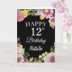 12. Geburtstag Aquarellfarben Blume Schwarze Karte