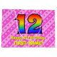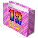 Dieses fröhliche und lustige Geschenktütendesign aus dem 12. Jubiläum weist eine große Zahl "12" auf, die durch das Aussehen eines Regenbogenspektrums inspiriert ist. Es enthält auch die Meldung "Happy 12 th Birthday", und einen benutzerdefinierbaren Namen. Der Hintergrund weist ein fröhliches Muster aus dunkelrosa und hellrosa Streifen auf, die sich in liebevollen rosa Herzformen auszeichnen. Geschenktüten wie diese können zum Umhüllen von Geschenken oder Geschenken verwendet werden, die jemandem geschenkt werden, der seinen zwölften Geburtstag feiert. [~Z0000414]