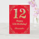 12. Geburtstag Rot und Gold Glitzer Rahmen Karte