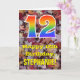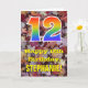 Die Vorderseite dieser bunten, rustikalen und naturlich inspirierten Geburtstagskarte zeigt eine große Zahl "12" mit einem Regenbogenspektrum inspiriert Muster. Es enthält auch die Meldung "Happy 12 th Birthday", und einen bearbeitbaren Namen. Der Hintergrund der Vorderseite der Karte weist ein rustikales, gefallenes Herbstblatt-Muster auf. Im Inneren befindet sich eine individuell anpassbare Geburtstags-Grußnachricht, oder vielleicht kann gelöscht und links werden, wenn eine Nachricht von Hand geschrieben werden soll. Eine personalisierte Geburtstagskarte wie diese ist vielleicht eine lustige Art, Geburtstagwünsche an jemanden zu senden, der gerade seinen zwölften Geburtstag feiert. [~Z0000384]