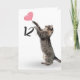 Graue Tabbykatze mit rosa Herzballon zum 12. Geburtstag auf weißem Hintergrund. Hintergrundfarbe kann geändert werden