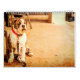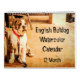 Eine Sammlung von 12 schönen ursprünglichen Aquarellmalereien der loyalen englischen oder britischen Bulldoggen. Draußen spielen und nach innen und legen. Dieser Kalender ist das perfekte Geschenk für den Bulldoggenhundeinhaber oder -züchter oder gerade für jedermann, das Lieben diese starken Hunde.