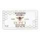 Dieses 3,75" x 2" Etikett (Versandlabel) ist eine perfekte Größe für eine 12 Unzen große runde oder hexagonale Honigdose und sieht mit einem goldenen Deckel gut aus. Die Mitte des Etiketts ist so formatiert, dass sie auf den vorderen Teil des Hexagon-Etiketts passt; auf der rechten und links Seite erscheint Wabenkabel mit Netzgewicht auf verlassen niedrigerem Etikett.