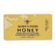 Dieses Label wurde speziell für den Einbau von 12 oz Honighex-Gläsern entwickelt. Der Text ist so formatiert, dass er in das mittlere Etikett mit Wabenkabel und "Bestes Kaufdatum" passt (oder in andere optionale Texte wie Kontaktdaten oder Varietäten auf links und rechten Paneelen). Das Etikett ist auch auf runden Honiggläsern hübsch. In Bienenzuchtartikeln sind kundenspezifische Skep-Jar-Etiketten als Kontur- ("Kiss-Cut")-Label erhältlich.