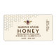 Dieses Label wurde speziell für den Einbau von 12 oz Honighex-Gläsern entwickelt. Der Text ist so formatiert, dass er in das mittlere Etikett mit Wabenkabel und "Bestes Kaufdatum" passt (oder in andere optionale Texte wie Kontaktdaten oder Varietäten auf links und rechten Paneelen). Das Etikett ist auch auf runden Honiggläsern hübsch. In Bienenzuchtartikeln sind kundenspezifische Skep-Jar-Etiketten als Kontur- ("Kiss-Cut")-Label erhältlich.