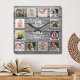 12 Photo Collage Family Quote Farmhouse Gray Wood Quadratische Wanduhr
