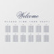 Eine einfache, transparente Sitzkarte mit 12 Tischen, empfohlen für eine marineblaue Hochzeit, aber auch zu anderen Anlässen verwendbar. Es handelt sich um eine Fensterverkleidung, die auf ein Fenster oder eine andere durchsichtige Glas- oder Acryloberfläche gelegt werden kann. Der gesamte Text ist marineblau. Das Wort Willkommen ist in einem eleganten kalligrafischen Skript geschrieben, die Erholung in Kappen. Die Tabellen befinden sich auf 2 Zeilen. Über ihnen und unter dem Wort "Willkommen" steht die Meldung "Bitte finden Sie Ihren Sitzplatz!".