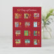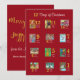 Basierend auf dem bekannten Weihnachtslied "The 12 Days of Christmas", zeigt dieses niedliche, skurrile Design eine wahre Menagerie verschiedener Tiere. Die Vorderseite dieser Karte zeigt alle Bilder für die 12 Tage in einem Collage-Format mit der entsprechenden Anzahl in großer, beliebter Typografie und dem entsprechenden Text in kleinerer dekorativer Typografie für visuelles Interesse. In dieser Version des Designs, als ein zusätzliches Merkmal, erscheinen die Worte "12 Tage Weihnachten" in passenden Schriftart über dem Set der Bilder. Die Rückseite der Karte enthält den Text "Frohe Weihnachten und Glück Neues Jahr" in beliebter Schrift Typografie, gefolgt von zwei "aus" Zeilen, die Sie personalisieren können.