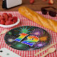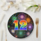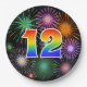 Dieses farbenfrohe, lustige und fröhliche Papier-Plattendesign zeichnet sich durch eine große Zahl "12" aus, die eine inspirierte Farbgebung des Regenbogenspektrums aufweist. Es zeichnet sich auch durch ein spannendes und lebendiges, aufstrebendes Feuerwerk inspiriert Muster aus. Der Hintergrund ist schwarz. Teller wie diese können bei einer Feier verwendet werden, um jemandes zwölften Geburtstag, zwölften Geburtstag oder ein zwölftes Ereignis zu würdigen. [~Z0000490]