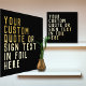 Diese echte Goldfolie-Poster-Kunst verfügt über eine Textvorlage in der modernen Typografie, die es Ihnen leicht ermöglicht, Ihre eigenen individuellen Phrasen hinzuzufügen, Zitat, Sprichwort, Text, Geburtstagswunsch, Sprichwort, Bibel Vers, motivierend Zitat, inspirierendes Zitat, lustige Zitate für Kinder, Mama, Papa, Großvater, Großmutter, Chef, Kollege, Krankenschwester, Krankenschwester, Doktorand, Lehrer, Lehrer, Lehrer, Lehrer, Lehrer und vieles. Der Stil des Schriftartes ist im Stil eines kühnen Schriftartes gehalten, der sich ideal für ein Hochzeitsschild, eine Bemerkung oder ein anderes.