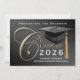 Diese Gold und Black Abschluss-Ankündigung oder Graduiertenparty ist perfekt für alle Unis, Gymnasiasten oder alle Absolventen. Klassisches Design mit geschmackvoll schwarzem Hintergrund mit goldener Schrift, Mörtel-Graduiertenkappe und Tassel. Super Leicht zu personalisieren mit Ihren Informationen. Kein Foto erforderlich, fügen Sie einfach Ihre Informationen hinzu, und schicken Sie eine E-Mail an Freunde und Familie mit einem Ihrer eigenen Senior-Bilder. Der klassische Abschluss im formalen Stil lädt Männer und Frauen jeden Alters oder Grades ein.