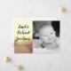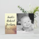 Diese 12x18 Sized adorable Foto Birth Announcement ist sowohl trendig als auch chic. Es ist auf glattem, lebendigem, mattem, 110lb-Cover-Papier gedruckt. Enthält 50 % gerecycelt Inhalt. Ideal für Ihre feierlichsten Einladungen und Veranstaltungshinweise. Diese sind mit Standard-weißen Umschlägen versehen.