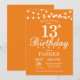 13. Geburtstag Einladung mit String Lights. Orange Hintergrund. Kindergeburtstag. Junge oder Girl Lady Bday einladen. 13. 15. 16. 18. 20. 21. 30. 40. 50. 60. 70. 80. 90. 100. Jedes Alter. Für weitere Anpassungen klicken Sie bitte auf die Schaltfläche "Anpassen" und verwenden Sie unser Designwerkzeug, um diese Vorlage zu ändern.
