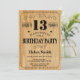 Einladung zum 13. Geburtstag. Typografie. Feiert bis 13 Jahre. Rustikaler Holzhintergrund. Kindergeburtstag. Männer oder Frauen zum Geburtstag. Kinder Junge oder Mädchen Lady Teen Teenage Bday einladen. 13. 15. 16. 18. 20. 21. 30. 40. 50. 60. 70. 80. 90. Jedes Alter. Für weitere Anpassungen klicken Sie bitte auf die Schaltfläche "Anpassen" und verwenden Sie unser Designwerkzeug, um diese Vorlage zu ändern.
