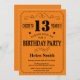 13. Geburtstag Einladung Black und Orange Typografie. Schwarz und Orange Hintergrund.Kindergeburtstag. Männer oder Frauen zum Geburtstag. Kinder Junge oder Mädchen Lady Teenage Teenage Bday Einladen. 13. 15. 16. 18. 20. 21. 30. 40. 50. 60. 70. 80. 90. 100. Jedes Alter.