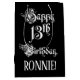 Dieses luxuriöse und formelle Geschenksack-Design mit der Meldung "Happy 13 th Birthday", in opulentem Text im Skriptstil, auf einem schwarzen Hintergrund. Es hat auch einen personalisierten Empfängernamen. Ein solcher Geschenksack kann verwendet werden, wenn Geschenke umhüllt werden, die jemandem anlässlich seines 13. Geburtstages gegeben werden. [~Z0000557]