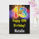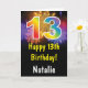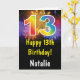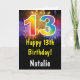 13. Geburtstag farbenfrohe Regenbogen Feuerwerk-Karte mit personalisiertem Namen. Für weitere Anpassungen klicken Sie bitte auf die Schaltfläche "Anpassen" und verwenden Sie unser Designwerkzeug, um diese Vorlage zu ändern.