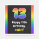 Dieses optimistische und fröhliche Geburtstags-Thema Papier Serviette Design zeigt die Zahl "13" mit einem farbenfrohen Regenbogenspektrum inspiriert Farbverlaufsmuster, zusammen mit der Meldung "Happy 13 th Birthday," und einem anpassbaren Empfänger-Namen. Fett gebürtige Papierservietten wie diese können bei einem Party zum dreizehnten Geburtstag von jemandem verwendet werden. [~Z0000629]