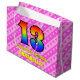 13. Geburtstag: Rosa Streifen & Herz, Regenbogen # Große Geschenktüte