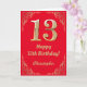13. Geburtstag - Rot und Gold Glitzer Rahmen Karte